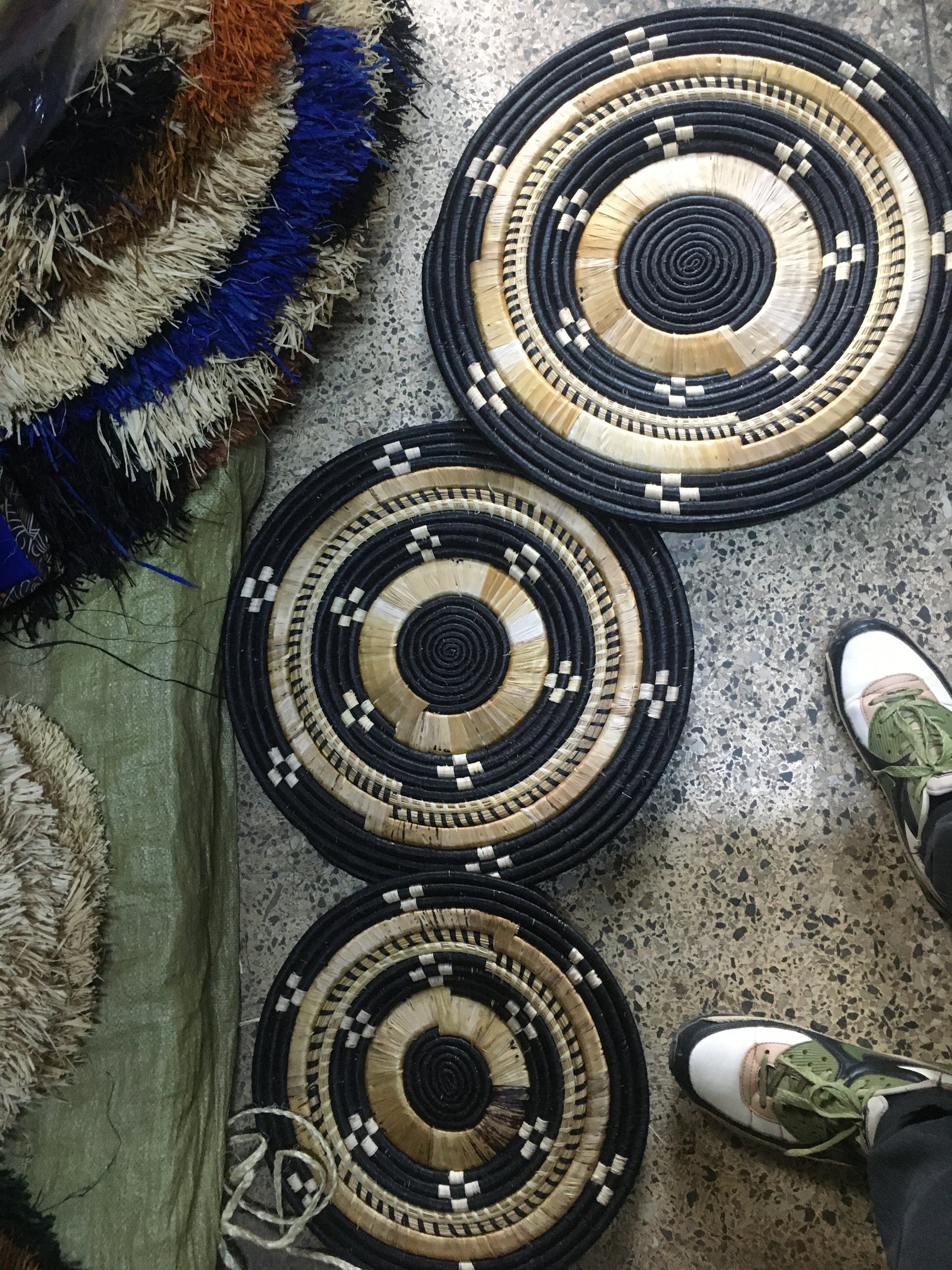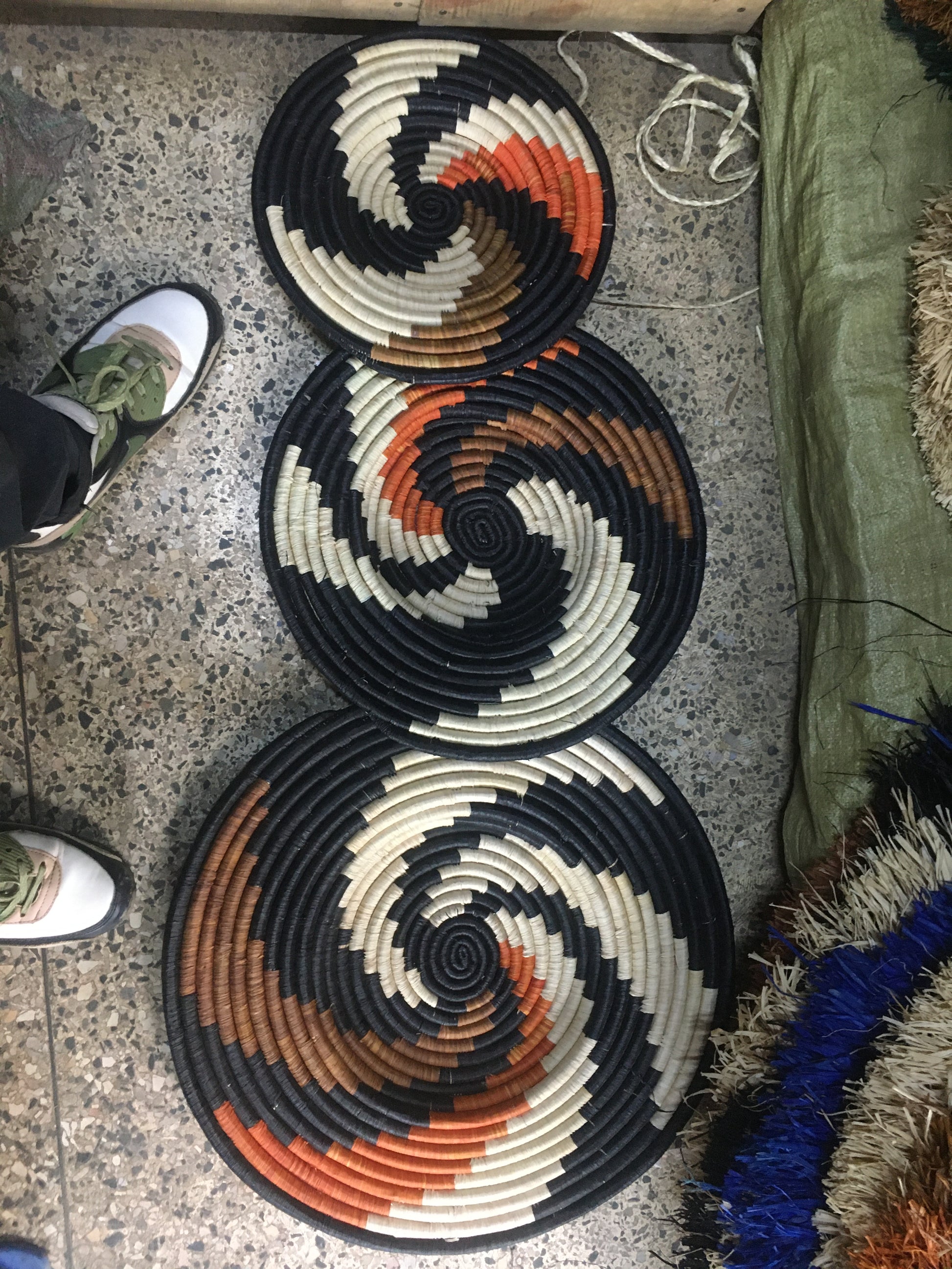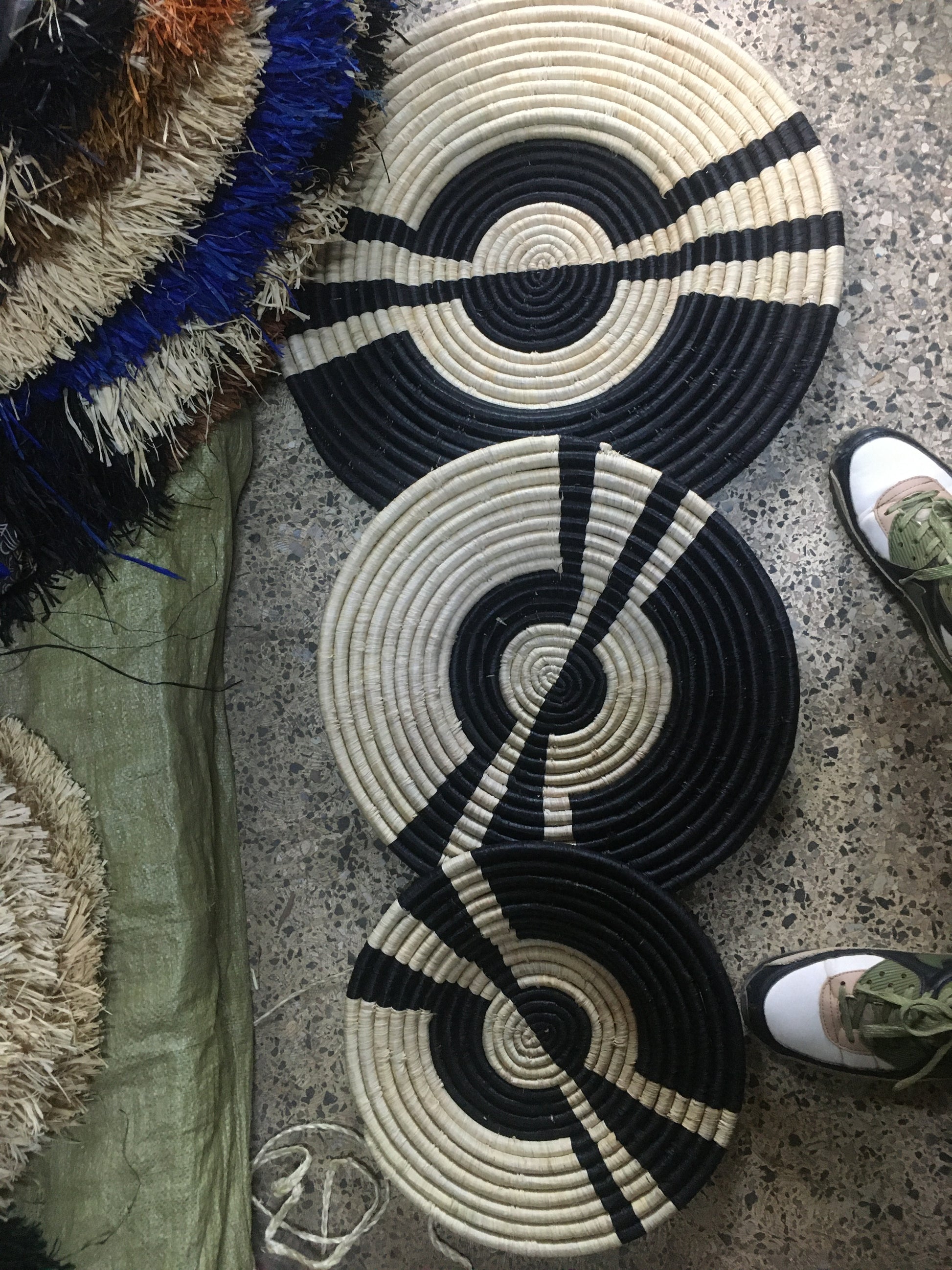 Handwoven African Wall Baskets | Set of 3 Natural & Black Spiral Décor